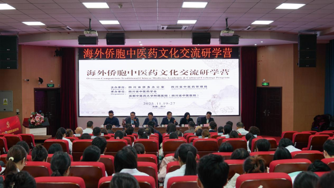 On November 20, the opening ceremony of the "Overseas Compatriots Traditional Chinese Medicine Academic & Cultural Exchange Program," jointly organized by the Sichuan Provincial Office of Overseas Chinese Affairs and the Sichuan Provincial Administration of Traditional Chinese Medicine, and hosted by our hospital and the Sichuan Provincial Association of Traditional Chinese Medicine, took place at our institution. Nearly 20 overseas Traditional Chinese Medicine (TCM) practitioners from 12 countries gathered at our hospital to embark on a nine-day cultural exploration journey into TCM. Zhu Yongou, Director of the Sichuan Provincial Office of Overseas Chinese Affairs; Mi Yinjun, Deputy Director of the Sichuan Provincial Administration of Traditional Chinese Medicine; and Fan Xiaohong, Vice President (in charge of administrative affairs) of our hospital, attended the ceremony and delivered remarks.