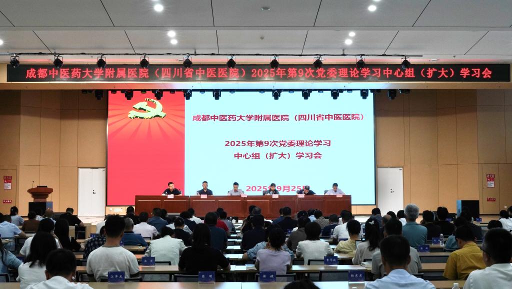 9月25日,我院召开2025年第9次党委理论学习中心组(扩大)学习会,传达学习《习近平谈治国理政》第五卷中关于“加快建设文化强国”的重要论述、医院安全稳定工作相关内容。校党委常委、副校长、院党委书记郑川主持会议。