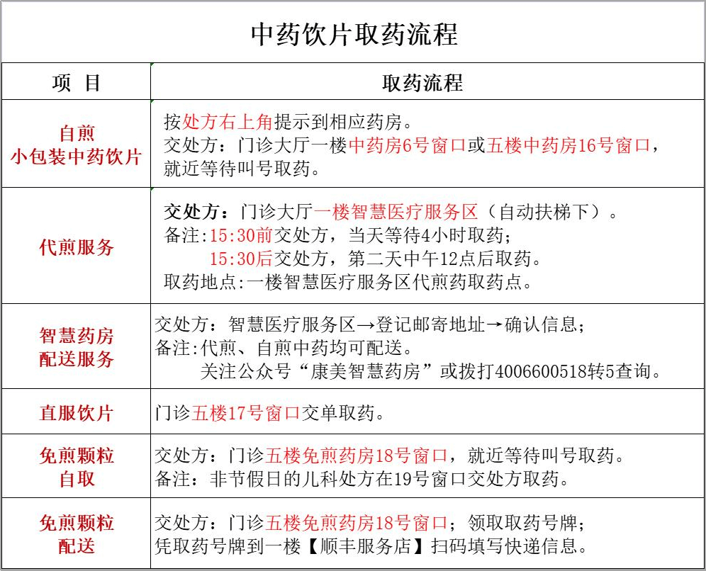 免煎药房:门诊大楼5楼(咨询电话:87783042)