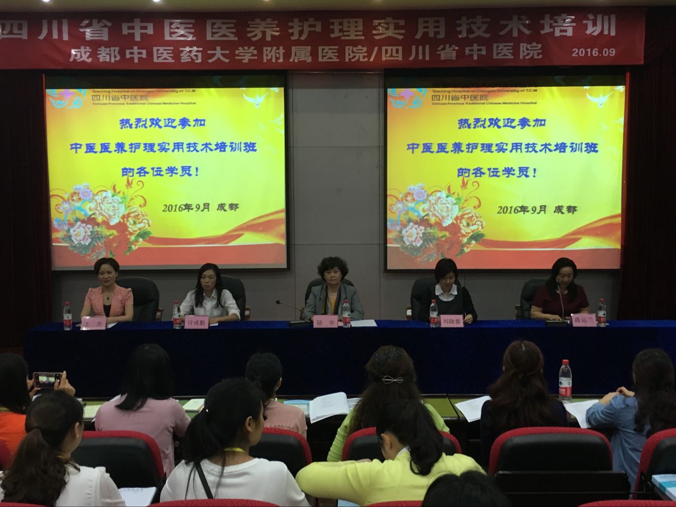 9月5日,由四川省中医药管理局组织开展,我院承办的中医医养结合临床技术骨干培训项目——中医医养护理实用技术培训在我院学术报告厅顺利开幕。省中医药管理局人教处副处长刘晓蓉、处级调研员许成勤、我院院长陆华、副院长蒋运兰及护理部相关负责人参加开幕式。