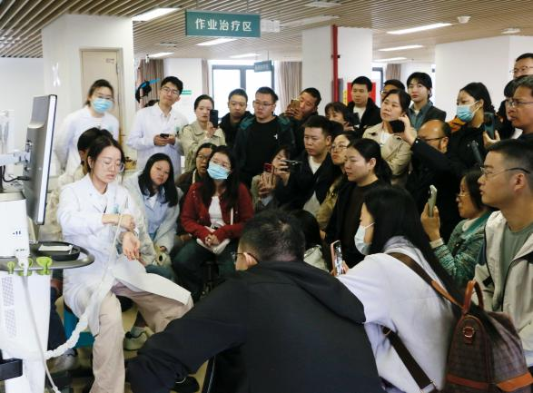 10月26日,培训班在我院针灸科康复治疗中心开展实践技能培训,康复医师胡田田实操演示了“超声引导下肩关节注射”技术,康复治疗师邓科杰展示了“肩关节功能障碍的关节松动术治疗”手法实操。通过现场教学和答疑,进一步提升了学员们理论与实践相结合的临床水平。
