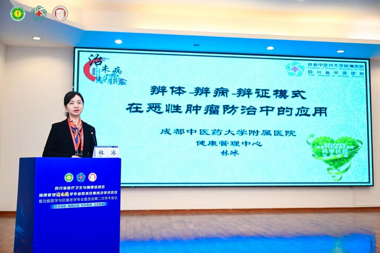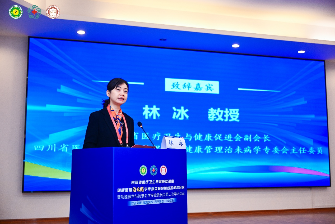 四川省医疗卫生与健康促进会副会长、四川省医疗卫生与健康促进会健康管理治未病学专委会主任委员林冰致开幕式欢迎致辞,林冰提到,随着“健康中国”战略的持续深入推进,健康管理服务模式不断创新,学科建设与人才培养体系日趋完善。本次会议邀请到了健康管理、治未病学及肿瘤预防康复领域的知名专家,他们不仅带来了前沿的学术成果,更带来了宝贵的临床经验和深邃的行业思考,尤其是中医治未病的思想理论及适宜技术在健康管理中的应用,为与会者提供了宝贵的学习平台。