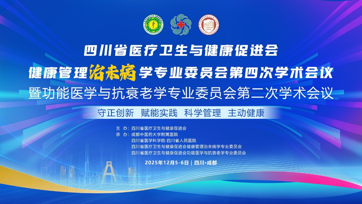 12月5-6日,由四川省医疗卫生与健康促进会主办,我院承办的“2025四川省医疗卫生与健康促进会健康管理治未病学专委会第四次学术会议暨功能医学与抗衰老学专业委员会第二次学术会议”在成都召开,省内30余名健康管理、治未病学、肿瘤预防与康复等领域的专家以及全省120余位参会代表莅临大会。