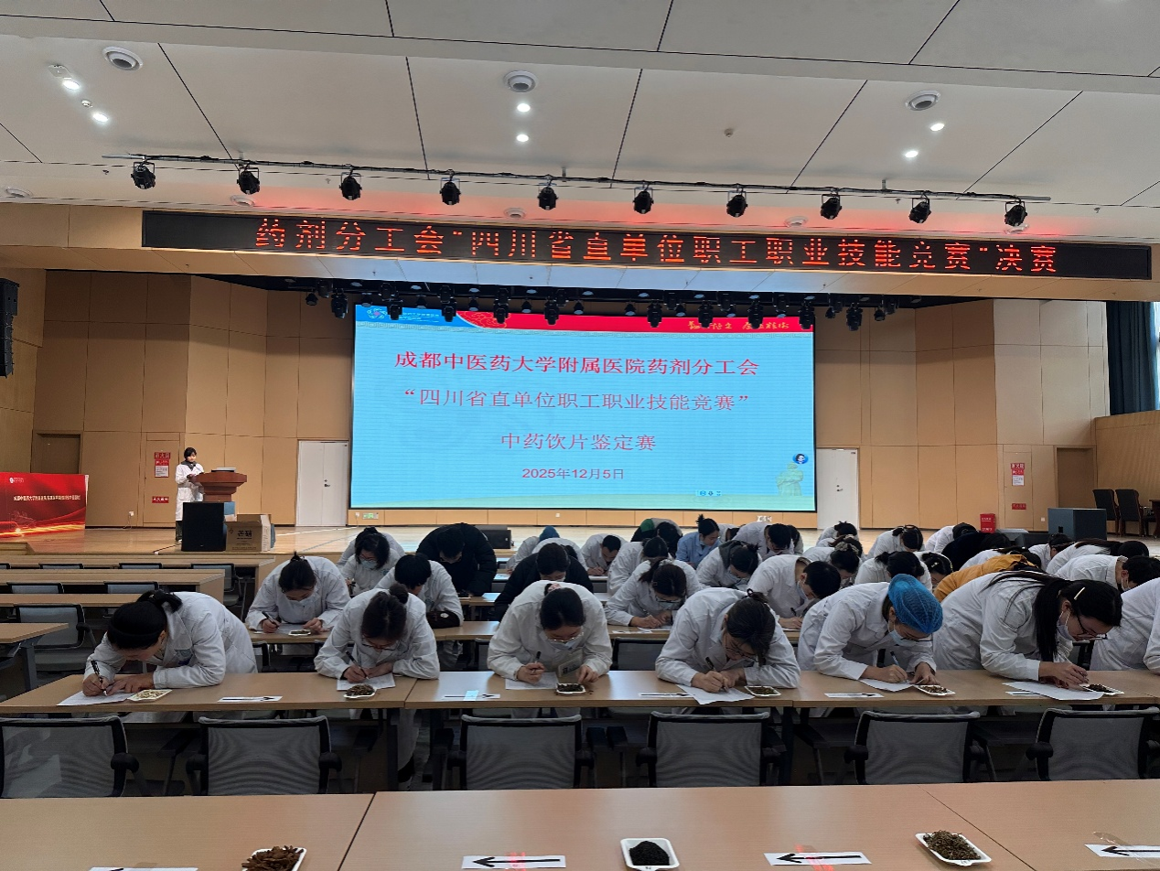 近期,我院药剂分工会开展2025年度“四川省直单位职工职业技能比赛”。本次比赛分为初赛与决赛两个阶段,共180名药学人员积极参与。初赛为药学专业知识笔试,决赛分为“中药饮片鉴定比赛”“药学专业知识抢答赛”两部分,全面考察选手的综合能力。