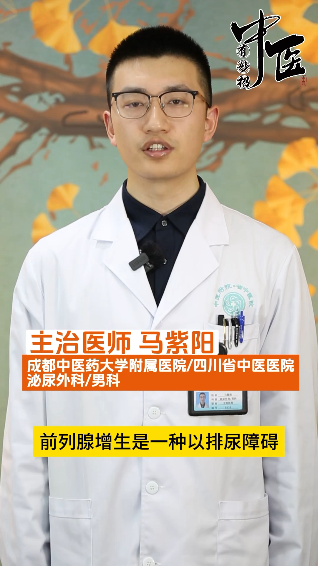 前列腺增生,也被称为前列腺肥大,是中老年男性中常见的疾病,那什么是前列腺增生呢?接下来,我们有请成都中医药大学附属医院/四川省中医医院泌尿外科/男科主治医师马紫阳为我们详细讲解。