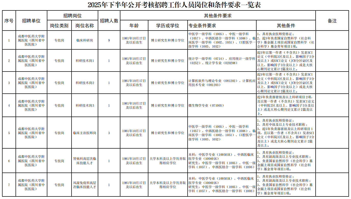 成都中医药大学附属医院(四川省中医医院)面向社会公开考核招聘工作人员17人,现将有关事项公告如下。